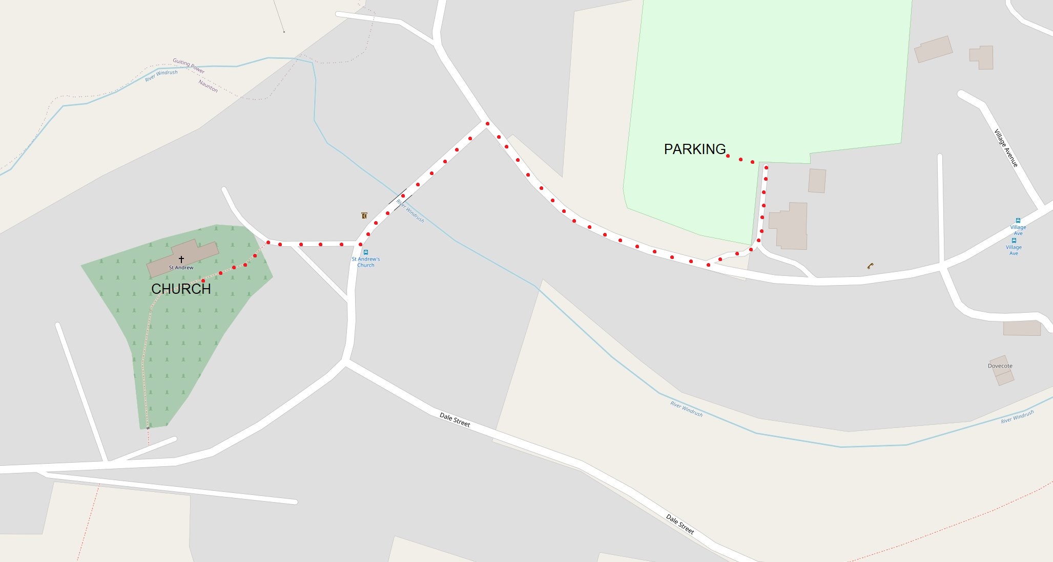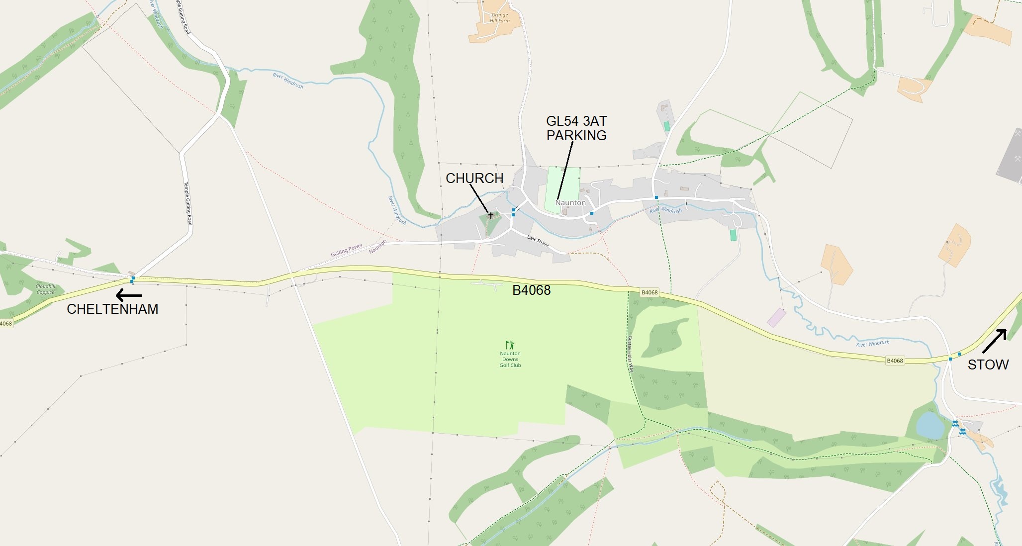 Parking for the concerts is in Naunton's recreation field, just a few minutes' walk from the church - please see the two maps below showing the overall view and then the detail. If one of your party has a mobility issue, do please call us on 07788-606408.